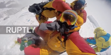 Footage released on Monday shows how Russian mountaineers trekked to Mt Everest’s so-called ‘death zone’ in order to perform a funeral for Slovenian alpinist Marko...
