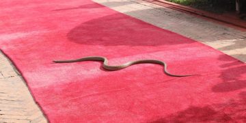 Around 6-foot-long snake was spotted on Friday slithering on the red carpet that was laid to welcome the Nepalese President, Bidhya Bhandari. President Bhandari was...
